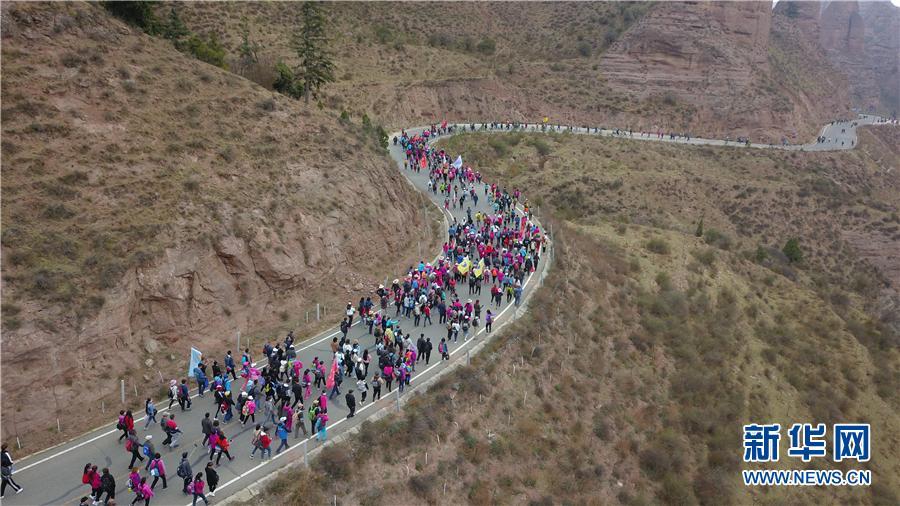 航拍山地徒步比賽現(xiàn)場。新華網 王小龍 攝