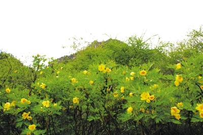 株高一兩米的大花黃牡丹掩映在一片片野生灌木叢中,一點(diǎn)點(diǎn)吸收陽光雨露再綻放出花朵。在片片綠葉的“呵護(hù)”下,大花黃牡丹有的嬌羞待放,有的則花瓣重重疊疊,在陽光下傲然吐露花蕊。