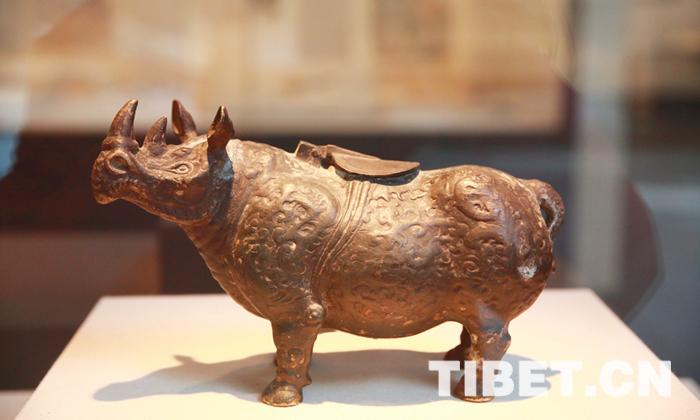 圖為拉薩海關(guān)查獲的明代青銅犀牛,陳列于中國(guó)海關(guān)博物館