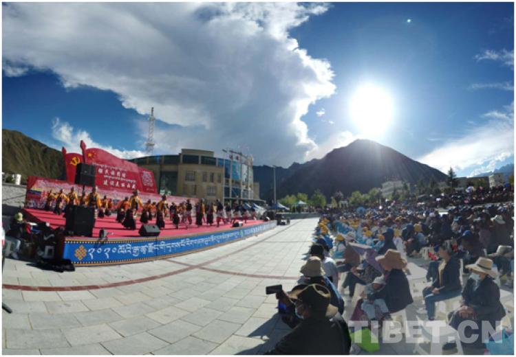 在文藝演出開始前,來自仁青林搬遷點的洛桑云丹老人講述了他的搬遷歷程,他將中央第七次西藏工作座談會、“四講四愛”以及中央、西藏自治區(qū)黨委、山南市委有關(guān)加強(qiáng)民族團(tuán)結(jié)的相關(guān)精神,用通俗易懂的話語講給大家聽,讓大家明白民族團(tuán)結(jié)的重大意義,理解團(tuán)結(jié)穩(wěn)定是福、分裂動亂是禍的道理。