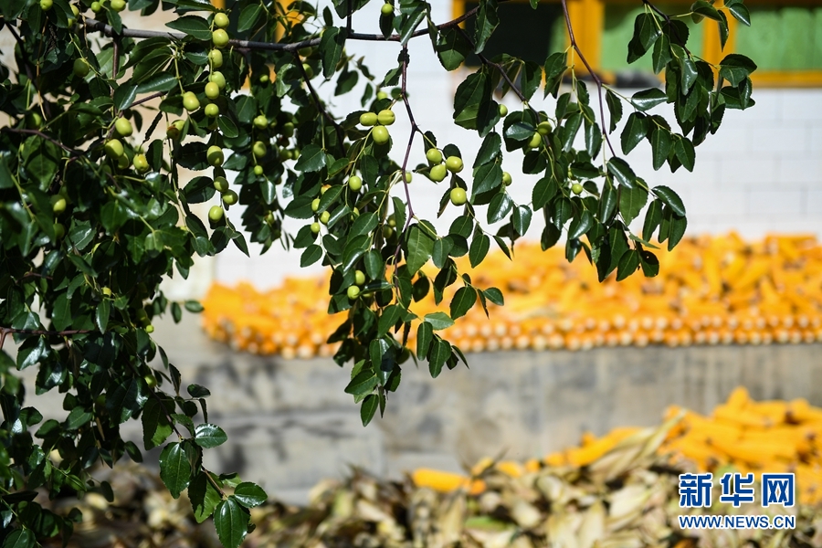 秋色漸濃,在青海省海東市循化撒拉族自治縣上紅光村,樹(shù)上的青棗已經(jīng)成熟,水泥地上晾曬著收獲的玉米,滿眼都是豐收的幸福感。