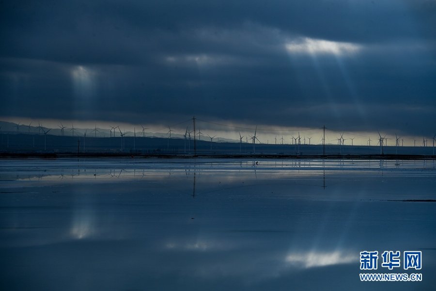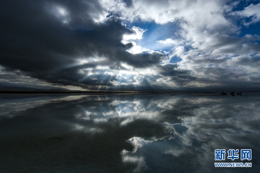 守候,只為一睹茶卡鹽湖的日出。清亮的光芒透過(guò)云層的縫隙,灑在湖面上,真如一面鏡子閃著光。