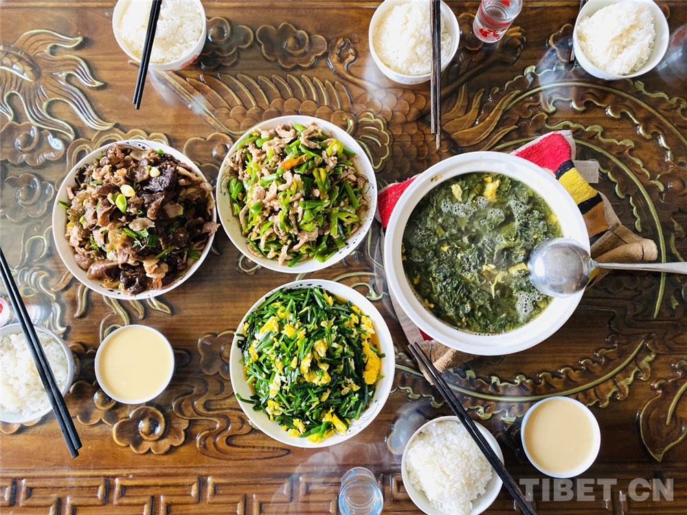 次增做得一手好菜,木耳青椒炒肉、韭菜炒雞蛋,還有蕎麥葉煮蛋湯,家常菜讓人感到非常親切和感動(dòng)。次增對我們說:“開展生態(tài)宜居示范村建設(shè)后,整個(gè)村變化特別大,以前村里的土路高低不平,現(xiàn)在道路平整,路也寬了,給我們帶來了很大的幸福,不是光我一家,我們整個(gè)村子家家戶戶都覺得非常滿意?!?/p>