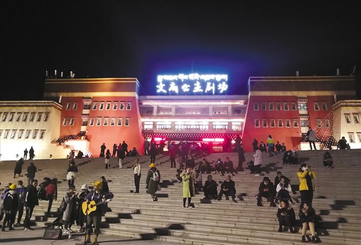 如今,拉薩除了布達拉宮、大昭寺……文成公主劇場及所在地慈覺林已然成為拉薩必游的又一新的打卡點。傍晚的慈覺林也因為文成公主而熱鬧非凡,雖然國慶黃金周已過,但是文成公主劇場前仍人潮涌動,游客、市民在這里欣賞美景、駐足,流浪歌手在這里熱情獻唱,小販的吆喝聲不斷,路邊的店鋪燈火通明,好不熱鬧。(記者 黃志武 見習記者 格桑央珍 桑吉 楊曦婷 攝)