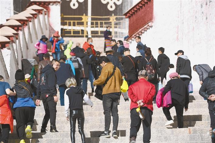 近年來(lái),隨著“冬游西藏”活動(dòng)推出,游客實(shí)現(xiàn)了赴藏旅游成本降一半、旅游體驗(yàn)更完美的“夢(mèng)想”。圖為11月8日,游客在布達(dá)拉宮參觀游玩。記者 李洲 攝