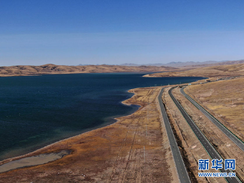 這是10月30日在青海省果洛藏族自治州瑪多縣境內(nèi)拍攝的一處湖泊(無人機(jī)照片)。新華社記者 張龍 攝