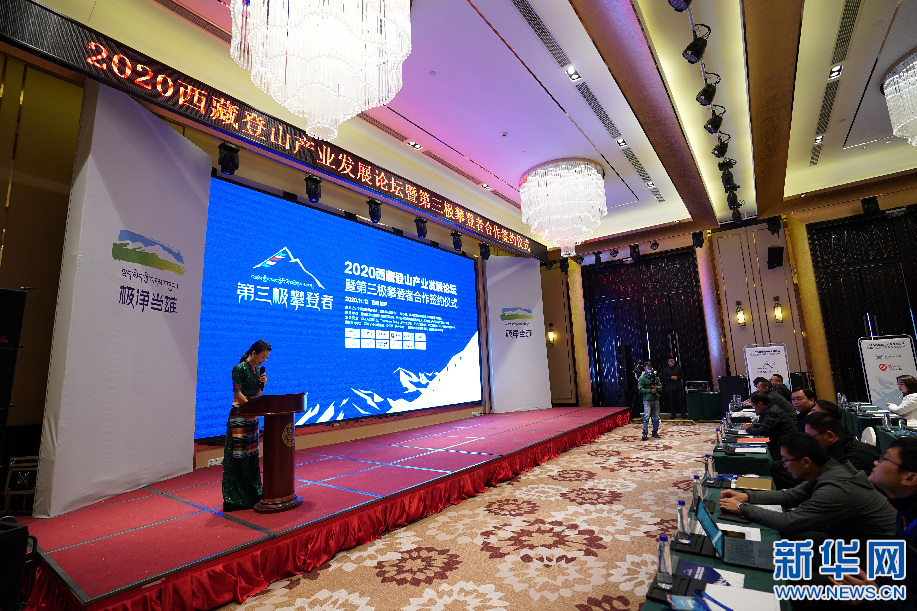 2020西藏登山產(chǎn)業(yè)發(fā)展論壇暨第三極攀登者合作簽約儀式現(xiàn)場(chǎng)(11月12日攝)。新華社記者 詹彥 攝