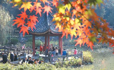 近日,江蘇南京棲霞山景區(qū)的紅葉樹種進入最佳觀賞期,漫山遍野的紅葉燦若云霞,令游客流連忘返。李文寶攝(新華社發(fā))