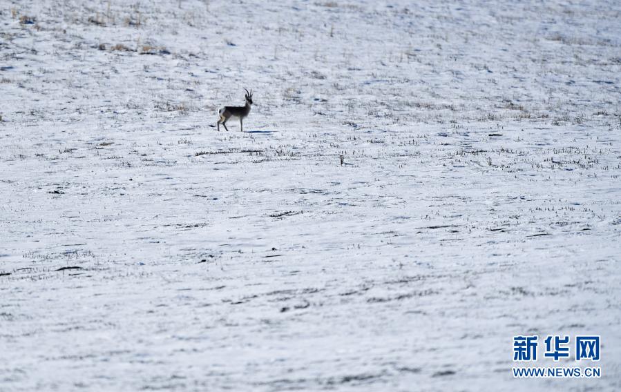 這是10月29日在青海省玉樹藏族自治州境內(nèi)拍攝的一只藏原羚。新華社記者 張龍 攝