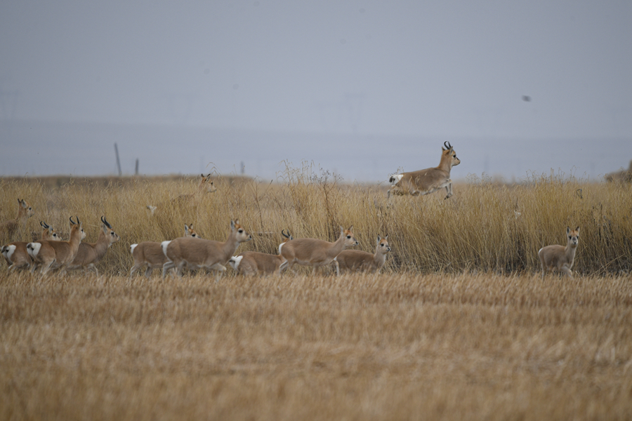 一群普氏原羚在特護(hù)區(qū)內(nèi)奔跑、跳躍。(11月20日攝)新華網(wǎng) 潘彬彬攝