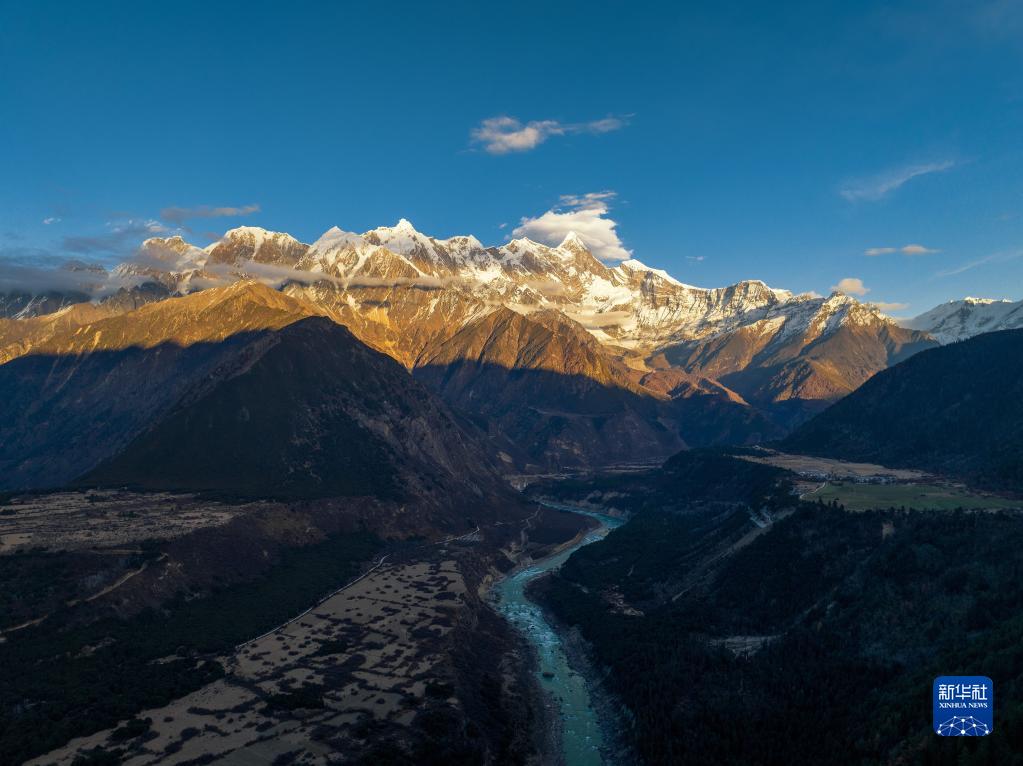 南迦巴瓦峰和山腳下的村莊(11月28日攝,無人機(jī)照片)。新華社發(fā)(董志雄 攝)