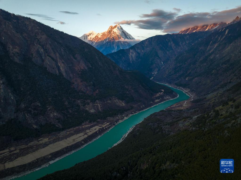 冬日里,夕陽照映下的雅魯藏布江大峽谷更顯靜謐深邃,景色如畫。