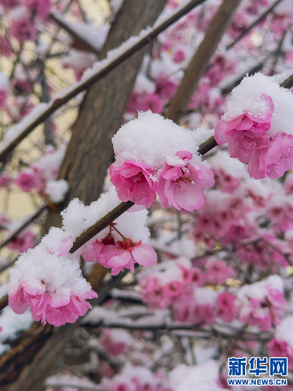 覆雪的花(3月30日攝)。新華網 柑丹鴦琦攝
