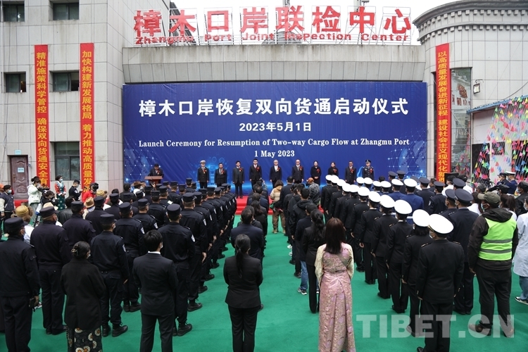圖為樟木口岸恢復(fù)雙向貨通儀式現(xiàn)場(chǎng) 攝影:鄒興國(guó)