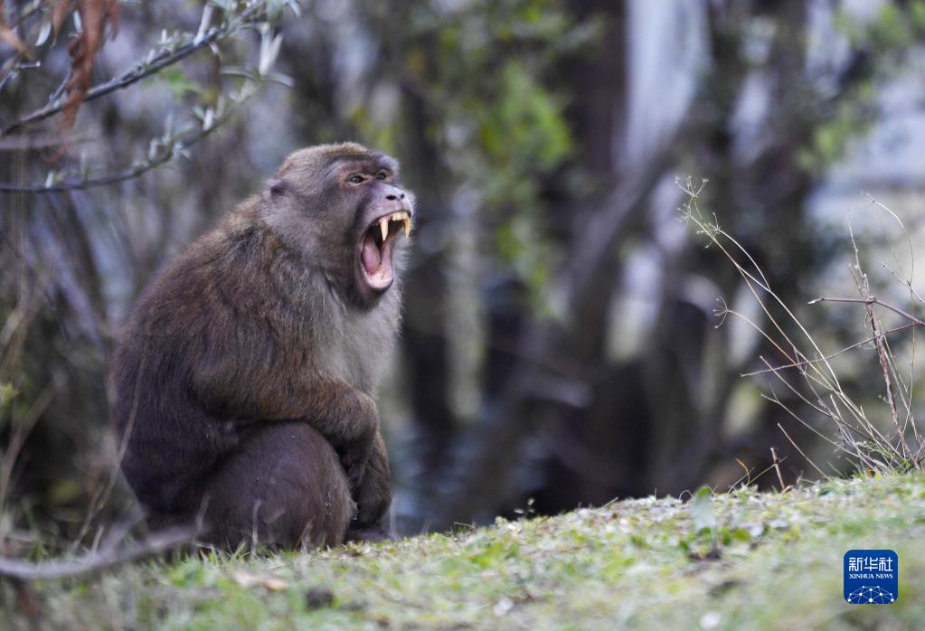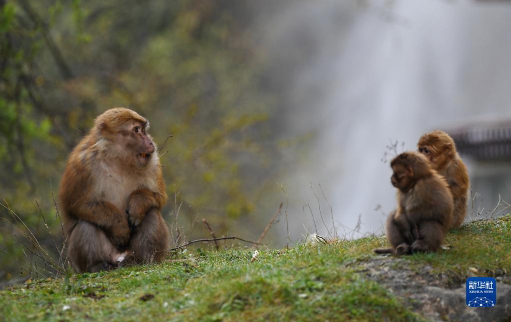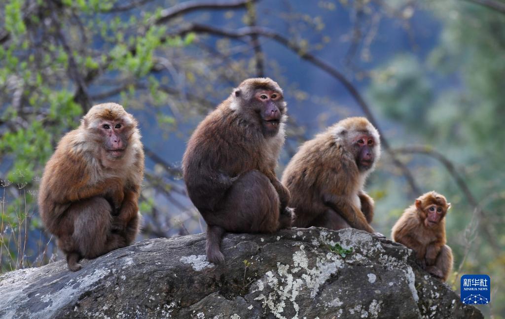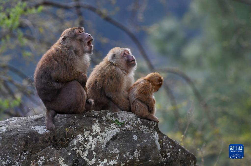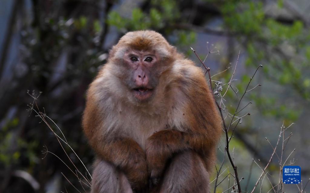 勒布溝里的獼猴(4月25日攝)。新華社記者 劉洪明 攝
