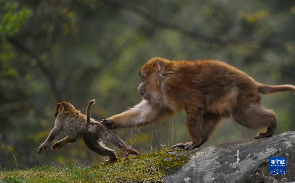 勒布溝里的獼猴(4月25日攝)。新華社記者 張汝鋒 攝
