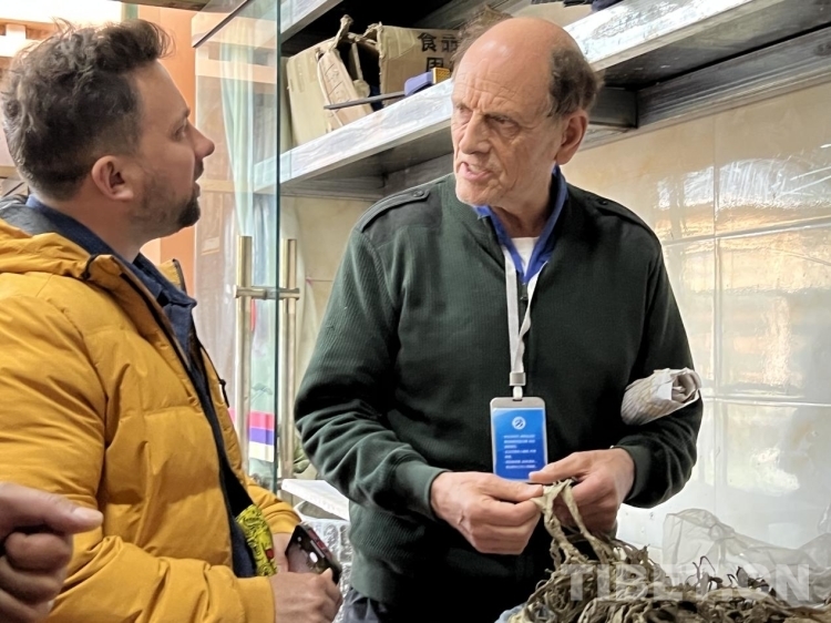 圖為5月16日參訪團(tuán)成員在農(nóng)民專業(yè)合作社了解藏紙?jiān)牧稀袄嵌静荨?攝影:德吉卓瑪
