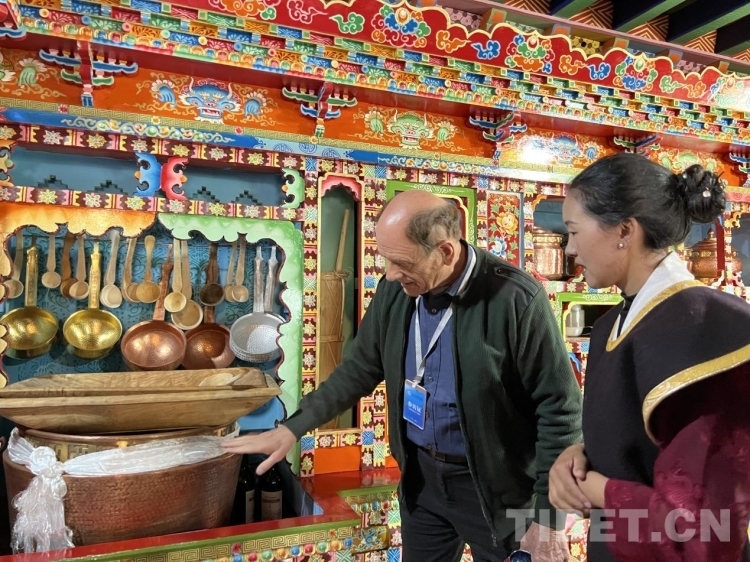 17日,參訪團(tuán)來到林芝市八宜區(qū)魯朗鎮(zhèn)扎西崗村考察扎西崗村村容村貌、旅游產(chǎn)業(yè)帶動(dòng)群眾增收致富等情況。參訪團(tuán)成員們對(duì)藏族群眾家擺放的家具、藏柜、墻壁上的繪畫等充滿好奇。