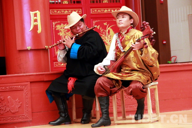 圖為拉薩市城關(guān)區(qū)娘熱民間藝術(shù)團樂師米瑪(左)和拉巴次仁(右)為演出伴奏。米瑪是西藏自治區(qū)級嘎爾傳承人,擔任藝術(shù)團笛子演奏、司鼓;拉巴次仁是拉薩市城關(guān)區(qū)級喇嘛瑪尼傳承人,擔任藝術(shù)團扎木年演奏。攝影:劉莉