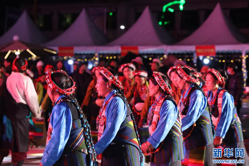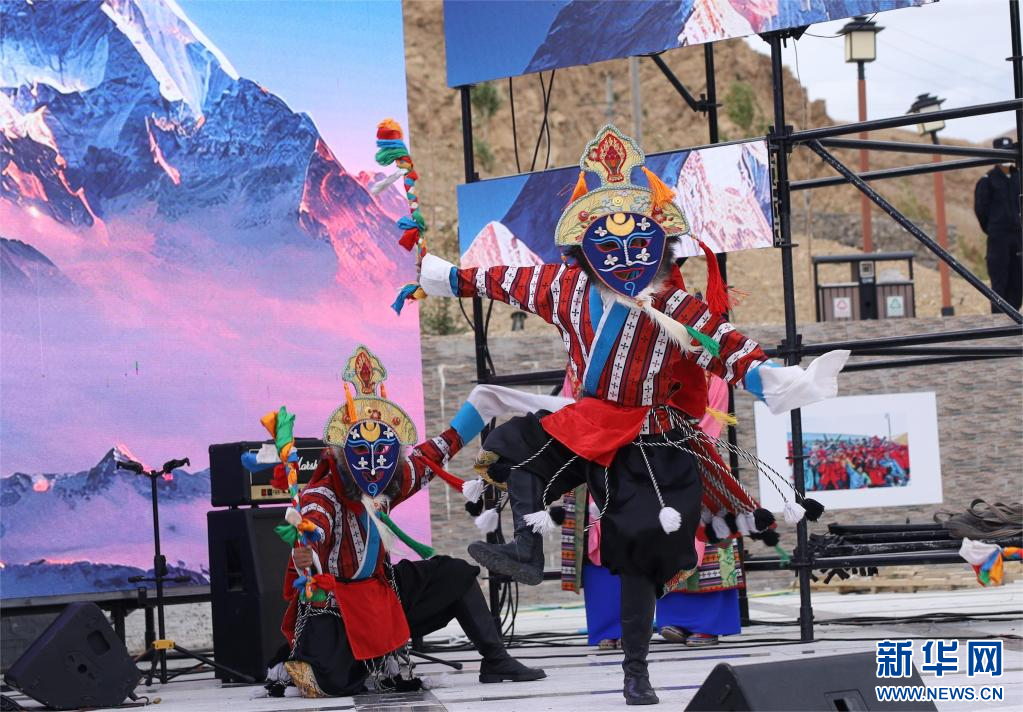 7月23日,在西藏定日2023珠峰音樂美食節(jié)現(xiàn)場,民間藝術(shù)團表演國家級非物質(zhì)文化遺產(chǎn)定日洛諧。新華網(wǎng)發(fā) 李騰 攝