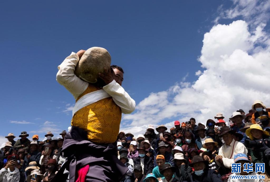 圖為達(dá)孜“望果節(jié)”抱石頭比賽現(xiàn)場(chǎng)(7月28日攝)。新華網(wǎng) 旦增努布 攝