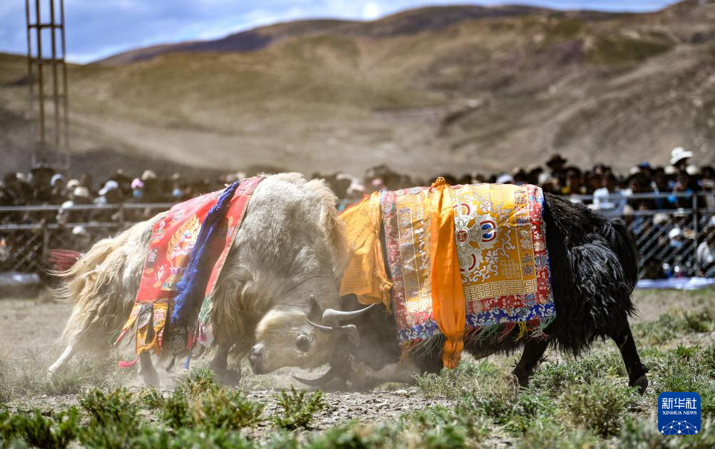 西藏日喀則市白朗縣者下鄉(xiāng)斗牛比賽歷史悠久。9月7日在者下鄉(xiāng)斗牛場舉行的牦牛斗牛比賽吸引了眾多牧民前來觀看。??