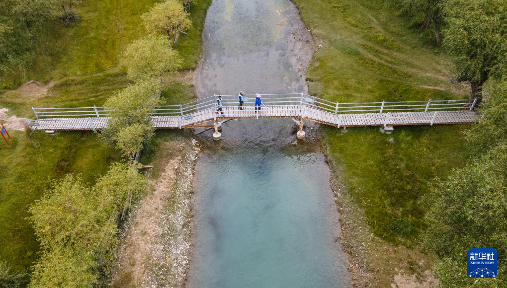 雅尼國家濕地公園管護員在巡護途中(無人機照片,9月8日攝)。新華社發(fā)(丁增尼達 攝)