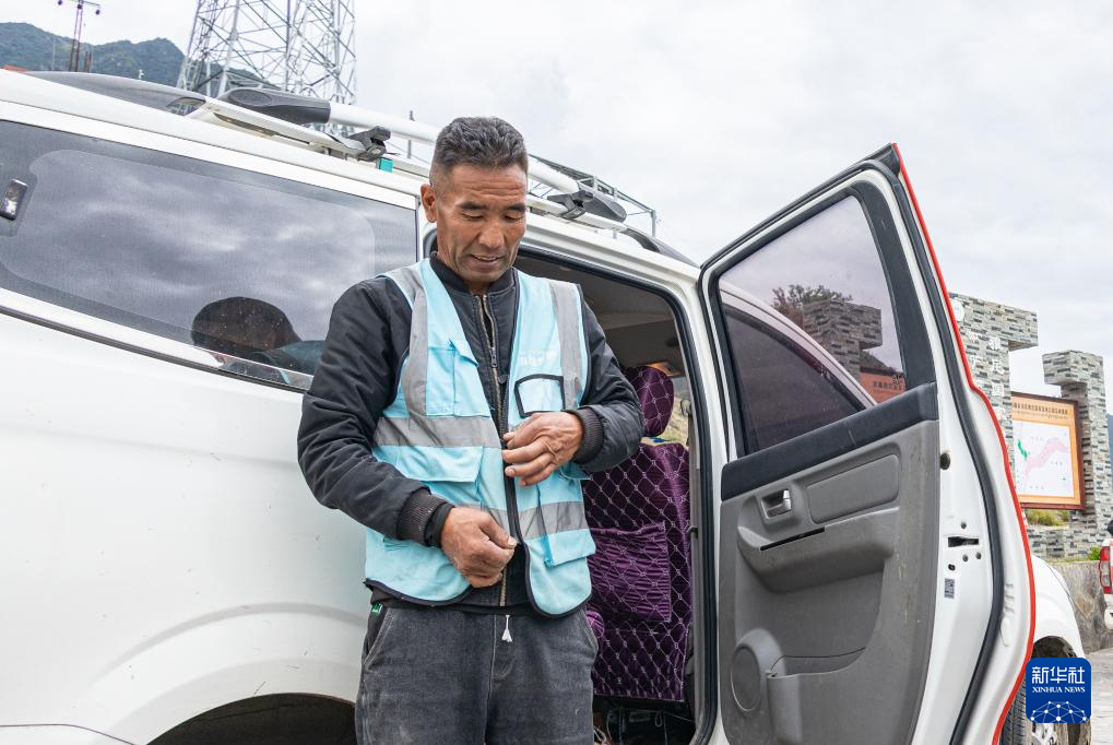 雅尼國家濕地公園管護員普布多杰在穿工作馬甲,準備開始巡護工作(9月8日攝)。新華社發(fā)(丁增尼達 攝)