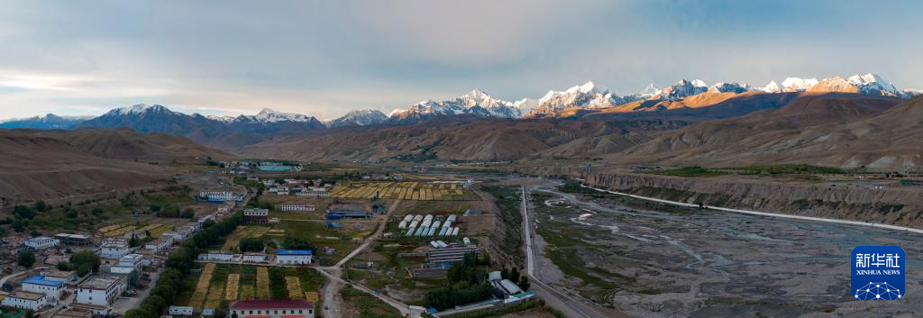 雪山環(huán)繞的普蘭縣普蘭鎮(zhèn)(無(wú)人機(jī)照片,9月14日攝)。新華社記者 姜帆 攝