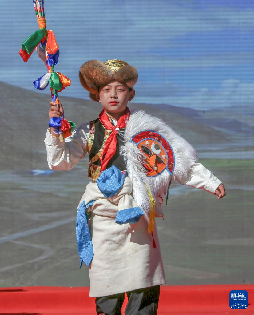 10月8日,演員在開幕式上表演藏戲。新華社記者 邵澤東 攝