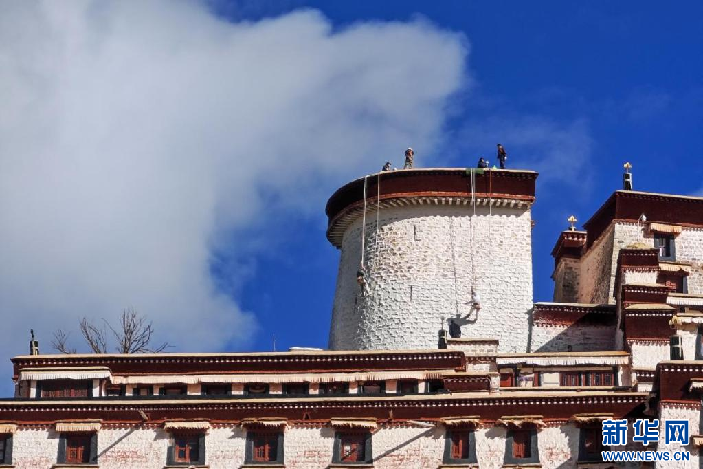 10月18日,布達(dá)拉宮“美容師”們?cè)趪姙⑼鈮?。新華網(wǎng) 柑丹鴦琦 攝