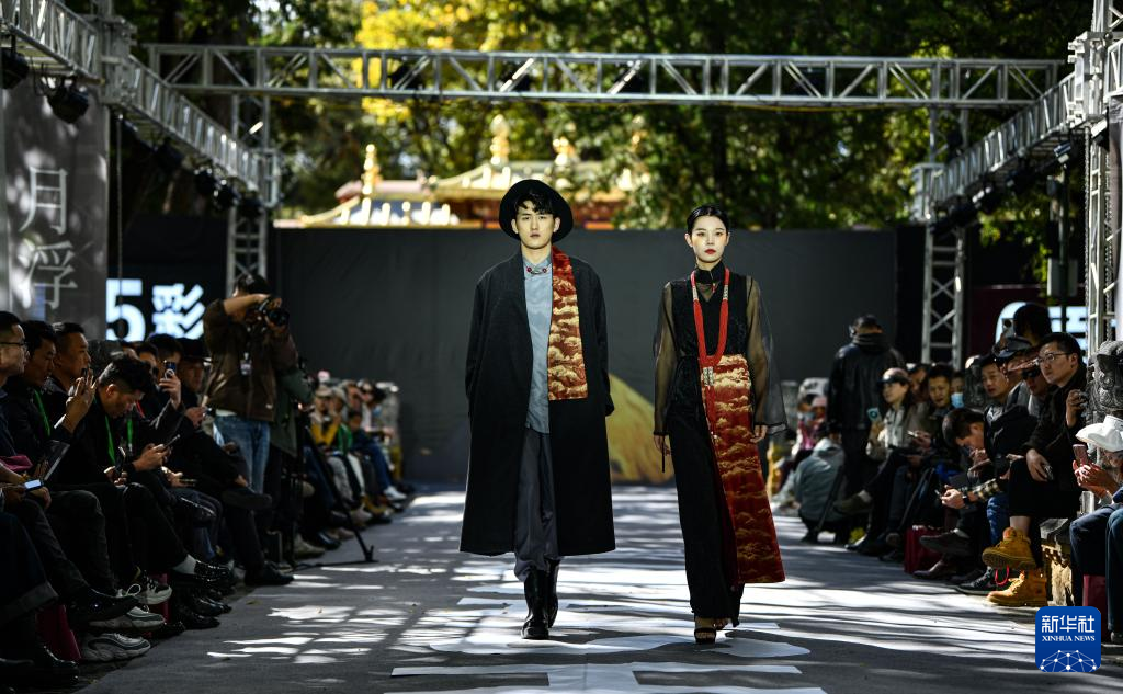 10月21日,模特在時裝發(fā)布會上展示創(chuàng)新藏裝。新華社記者 晉美多吉 攝 ??