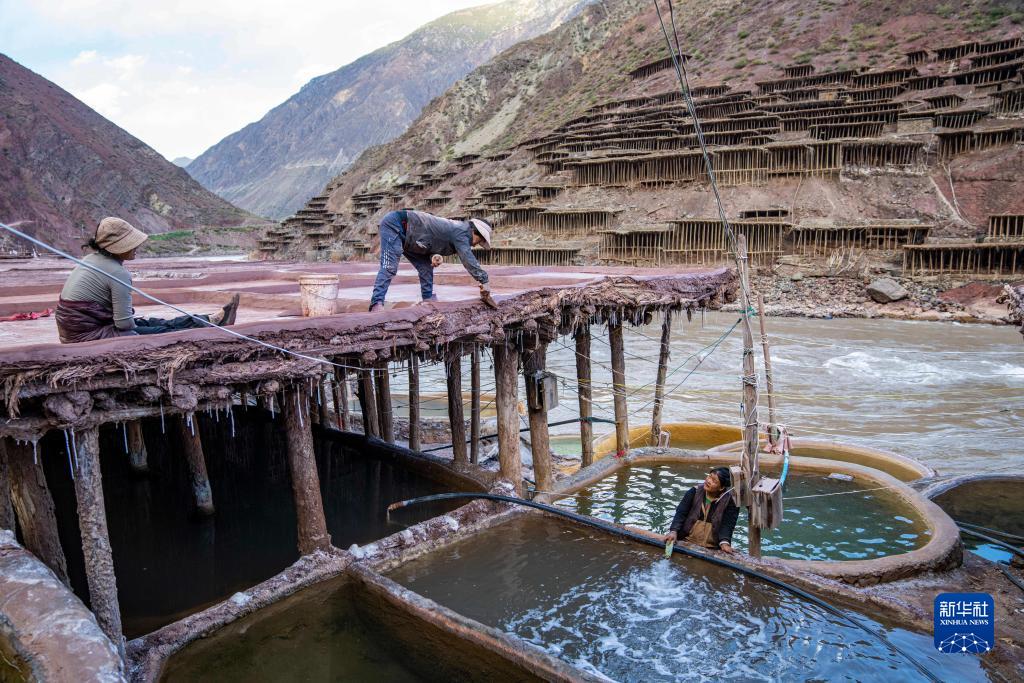 西藏昌都市芒康縣納西民族鄉(xiāng)村民在鹽田里勞作(10月20日攝)。新華社記者 孫非 攝