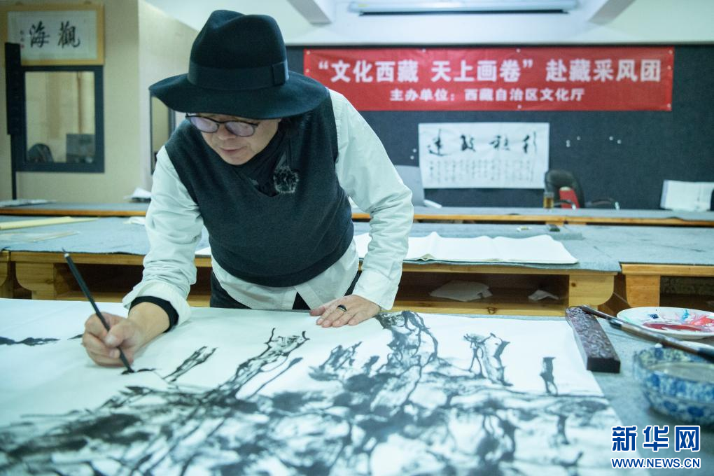 10月16日,畫家張懷偉在創(chuàng)作。新華網(wǎng) 旦增努布 攝