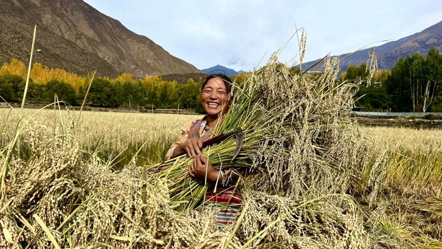 “能吃上自家種植的大米,以前這種事情想都不敢想?!必S收的喜悅洋溢在村民卓嘎臉上。她說(shuō),如今能吃上自家種的大米,非常開心,非常有成就感!