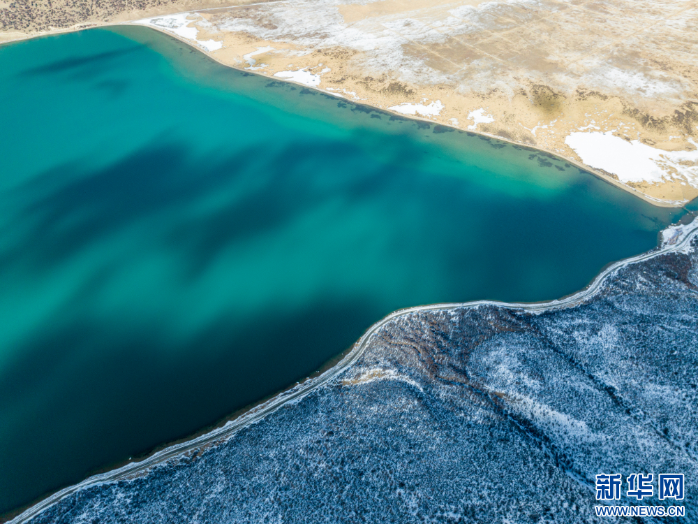 12月10日拍攝的嘉乃玉錯(cuò)湖邊(無人機(jī)照片)。新華網(wǎng) 旦增努布 攝