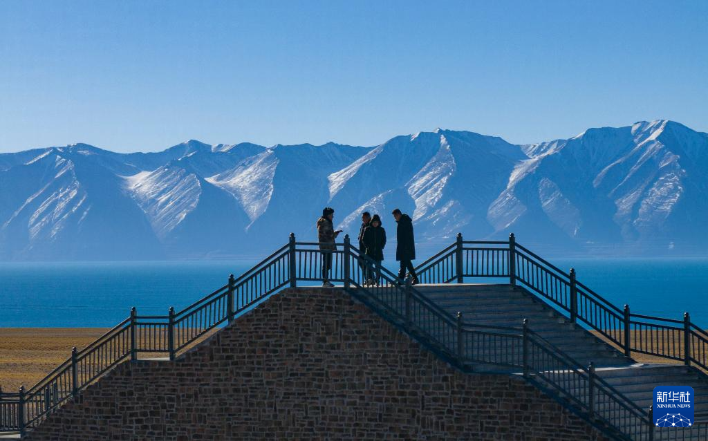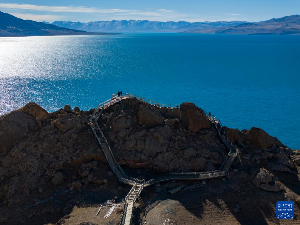 這是當(dāng)惹雍錯(cuò)旁剛剛竣工的棧道和觀景臺(tái)(無(wú)人機(jī)照片,12月20日攝)。新華社記者 格桑朗杰 攝