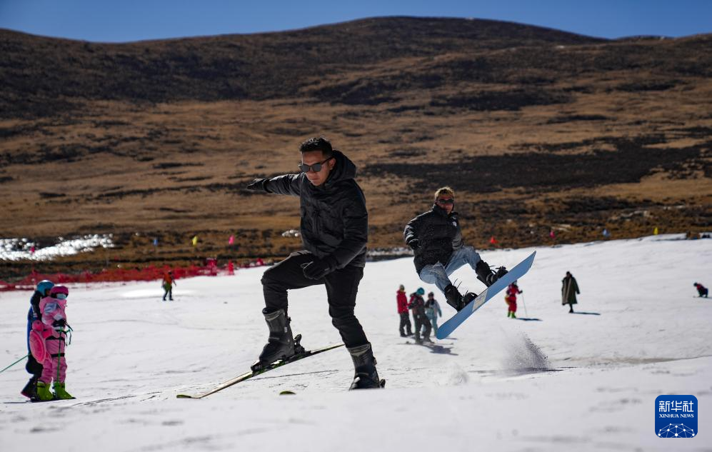 1月13日,滑雪愛好者在墨多滑雪場(chǎng)滑雪。新華社記者 晉美多吉 攝