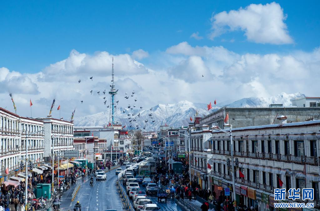 當(dāng)日是農(nóng)歷臘月初八,西藏拉薩市迎來(lái)降雪,城區(qū)銀裝素裹,雪景分外優(yōu)美,吸引了眾多市民外出拍攝游玩。