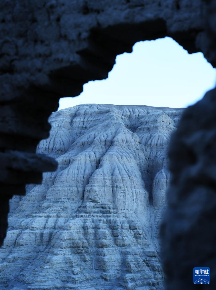 這是透過(guò)古格王國(guó)遺址殘?jiān)臄z的土林(1月30日攝)。新華社記者 關(guān)明輝 攝