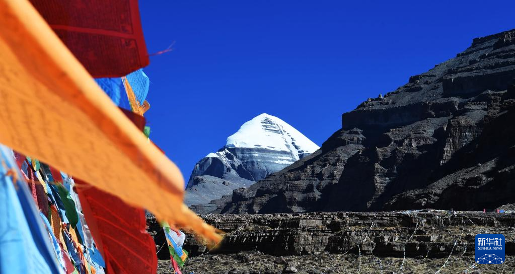??岡仁波齊峰與經(jīng)幡(1月30日攝)。新華社記者 關(guān)明輝 攝