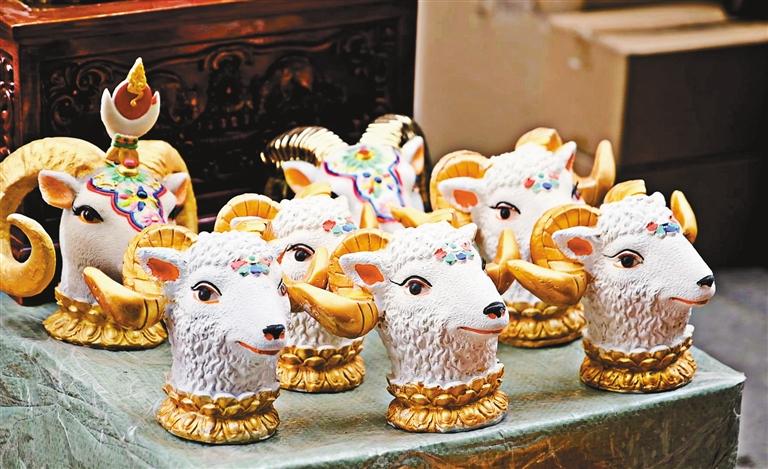 塑彩羊頭在藏語(yǔ)中稱(chēng)為“隆果”,在雪域亙古浩瀚的歷史中,高原兒女自古以來(lái)便認(rèn)定羊是吉祥的動(dòng)物,代表了藏族群眾祈盼來(lái)年五谷豐登、六畜興旺。