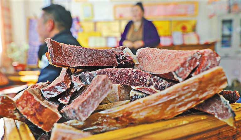 風(fēng)干牦牛肉。 記者 格桑倫珠 攝