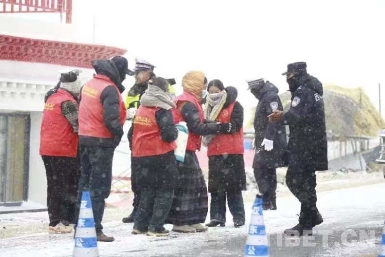 中國西藏網(wǎng)訊 近日,西藏氣象局連續(xù)發(fā)布大風和暴雪黃色預(yù)警。22日,受西風槽影響日喀則市亞東縣帕里鎮(zhèn)范圍降暴雪,G562部分道路積雪厚度達20余厘米。降雪降溫對交通影響較大,為守護轄區(qū)內(nèi)道路安全,帕里鎮(zhèn)四社區(qū)駐村工作隊組織12名45歲以下黨員身著紅色志愿服,利用社區(qū)愛心驛站配合執(zhí)勤交警,以輪班形式對轄區(qū)內(nèi)國道沿線進行不間斷巡邏,重點對急彎陡坡、橋面、風吹雪等路段進行不間斷巡查,警民協(xié)作確保道路安全暢通。