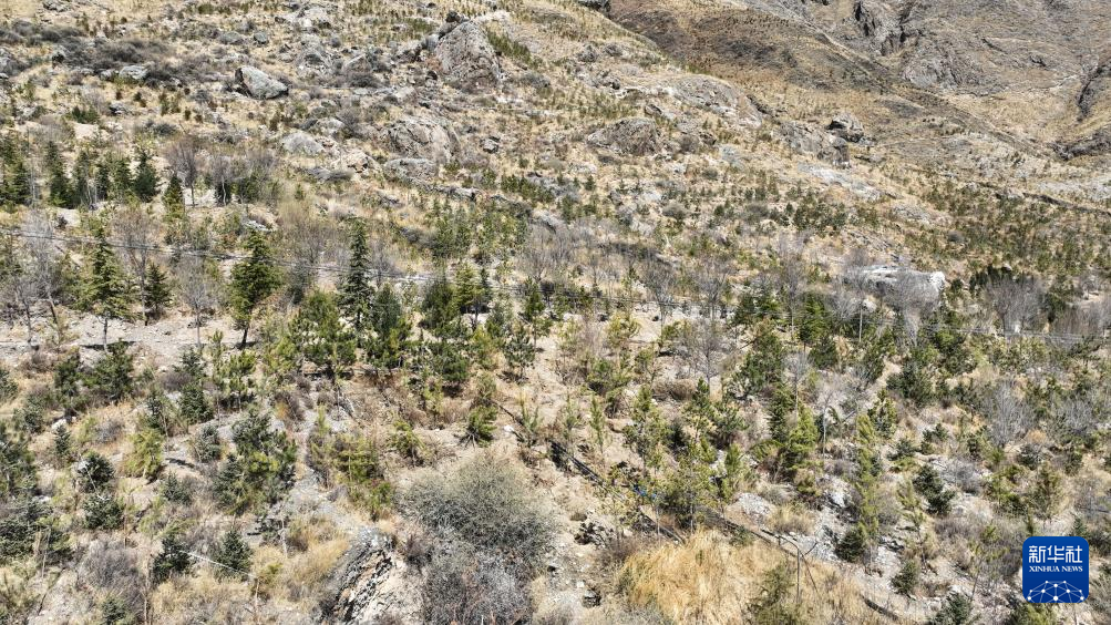 這是3月12日在西嘎山上拍攝的樹(shù)木(無(wú)人機(jī)照片)。新華社記者 田金文攝 ??