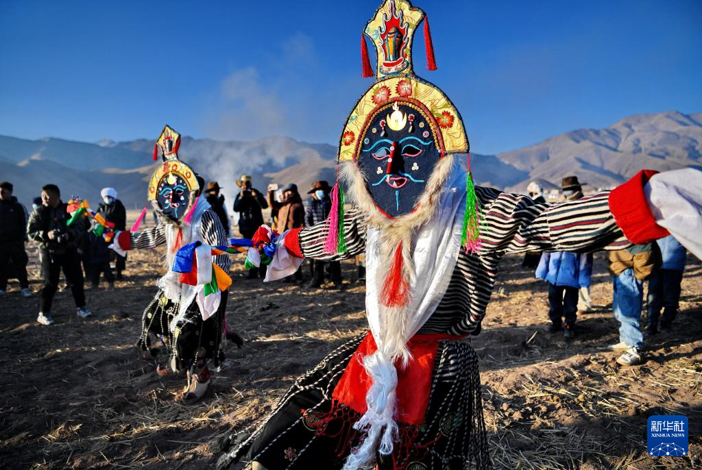 3月16日,在西藏拉薩市林周縣春堆鄉(xiāng)的春耕儀式現(xiàn)場,當(dāng)?shù)厝罕姳硌莶貞?。新華社記者 張汝鋒 攝 ??