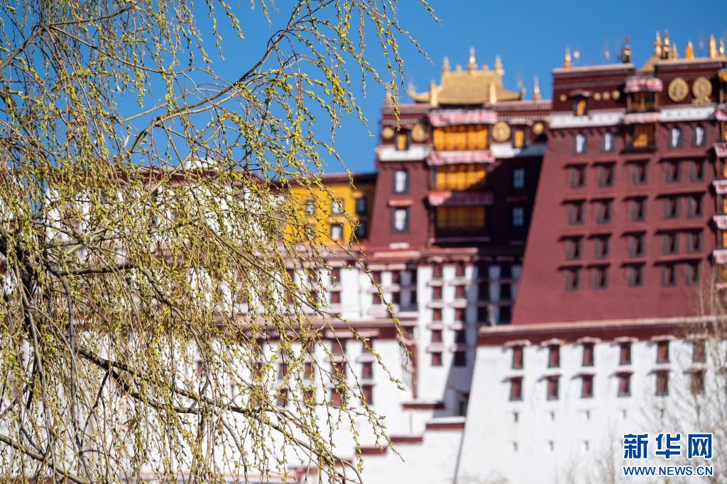 3月15日,吐露新芽的柳枝掩映著布達拉宮。新華網(wǎng) 旦增努布 攝