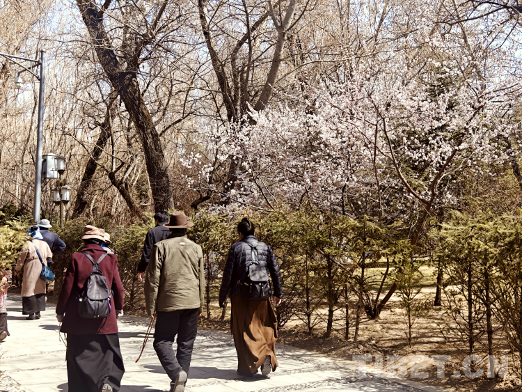 圖為3月19日,拉薩市民在布達拉宮腳下的宗角祿康公園內(nèi)漫步賞春景 攝影:次旦拉姆