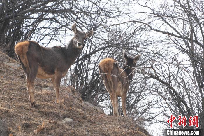 圖為林周縣境內(nèi)的白唇鹿。貢嘎來松 攝