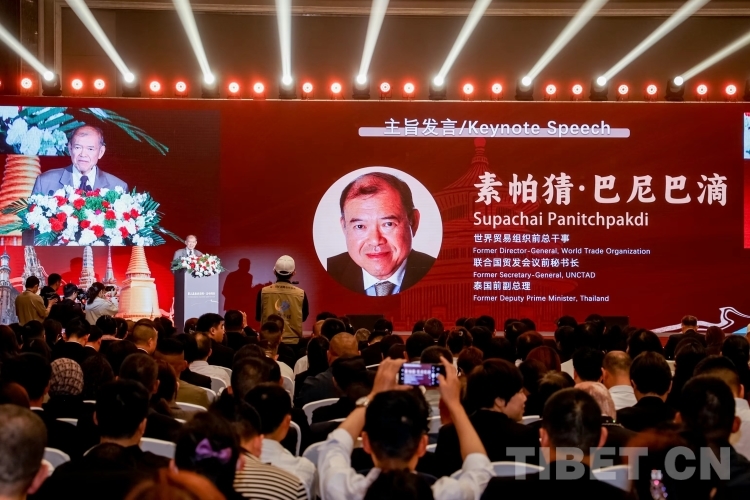 圖為世界貿(mào)易組織前總干事素帕猜·巴尼巴滴在活動(dòng)現(xiàn)場(chǎng)。